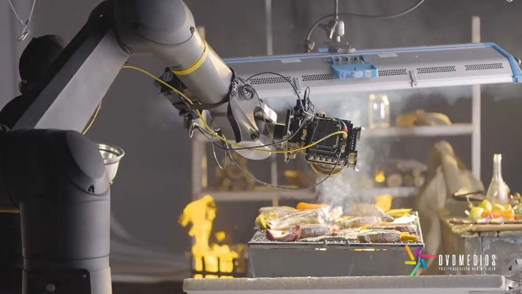 For the last 5 years or so, it’s become common for food and beverage adverts of this type to be made with the help of robots. A high-speed camera is mounted onto the robot’s arm as an end effector while the lighting and other aspects of the scene are synchronized precisely with an electronic controller.