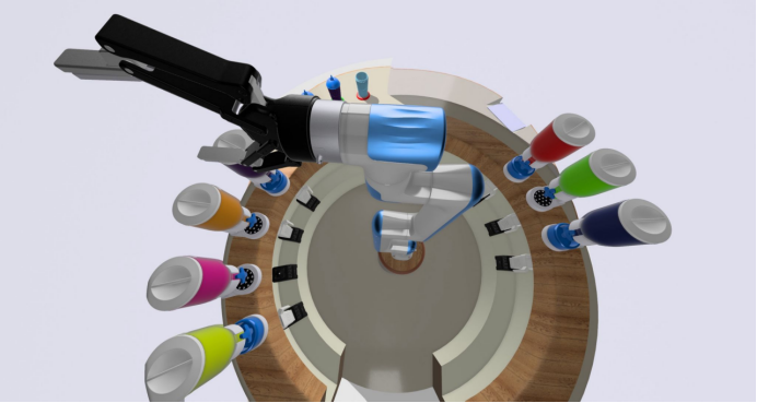 某航空航天人工智能团队利用RoboDK仿真平台,提出了一个自动化果汁生产解决方案。