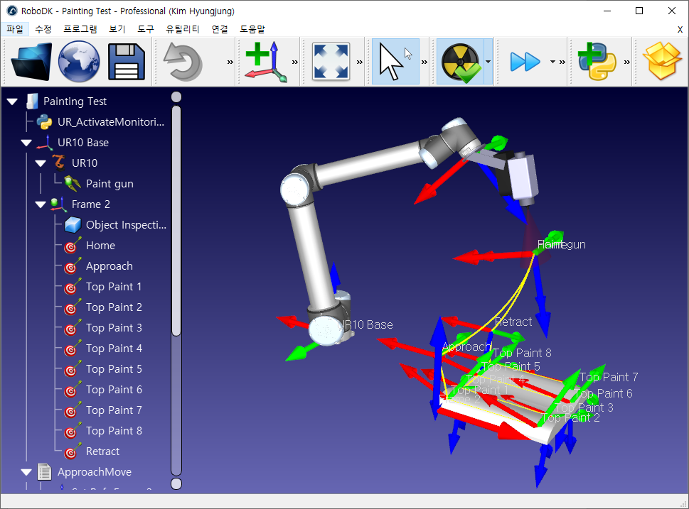 시작하기는 UR10 로봇으로 RoboDK에서로봇페인팅애플리케이션을통해오프라인으로간단한프로젝트를구축하는방법을예제로설명합니다. 본예제는 RoboDK의시뮬레이션및오프라인프로그래밍의주요기능중일부에대해아래사항을포함한일반적인사항을제공합니다.