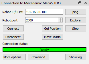 4.로봇연결패널에서위치 가져오기를 선택합니다. 이단계는 RoboDK에서로봇의위치를업데이트합니다.