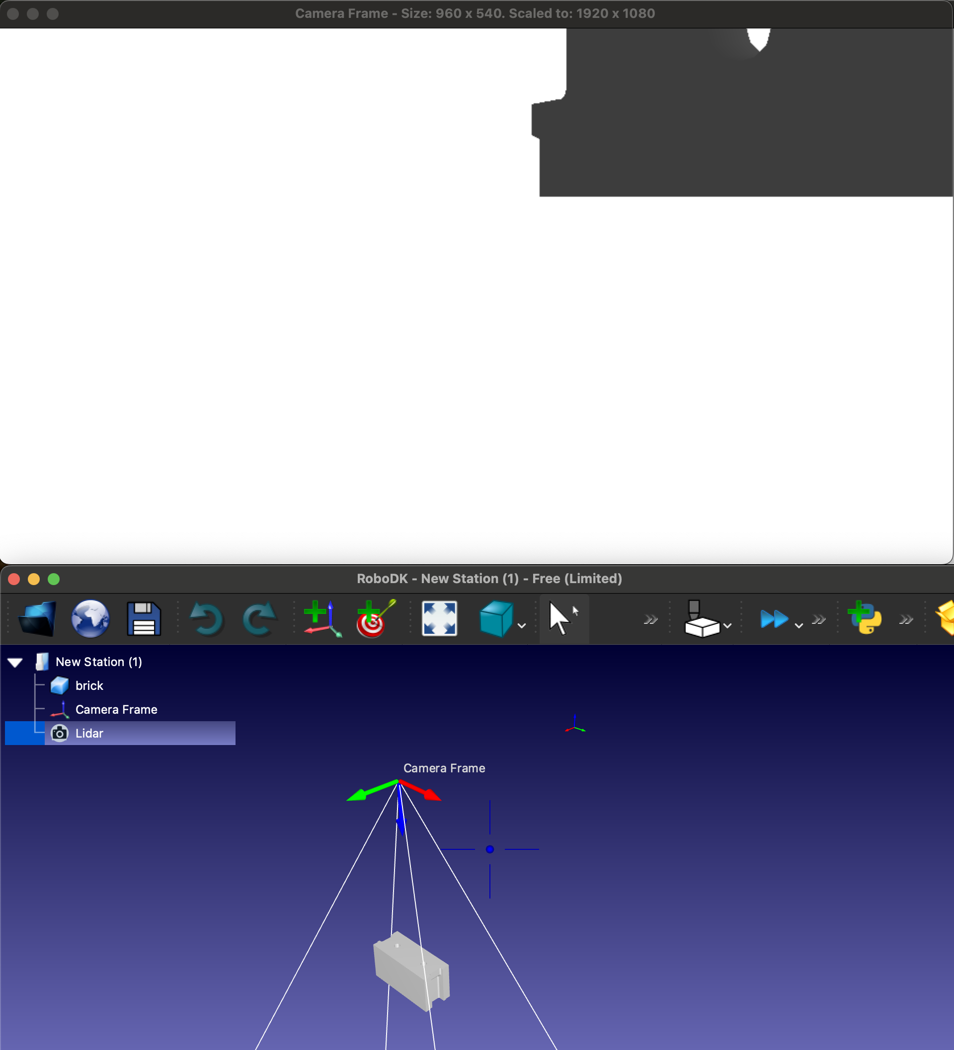 1. Camera can see objects just fine with 'Color' view type (attachment #1). But when I change view type to 'Depth' (attachment #2) it crops the view field (see attachment #3). Code is here https://github.com/GRusar/robodk-camera-issue