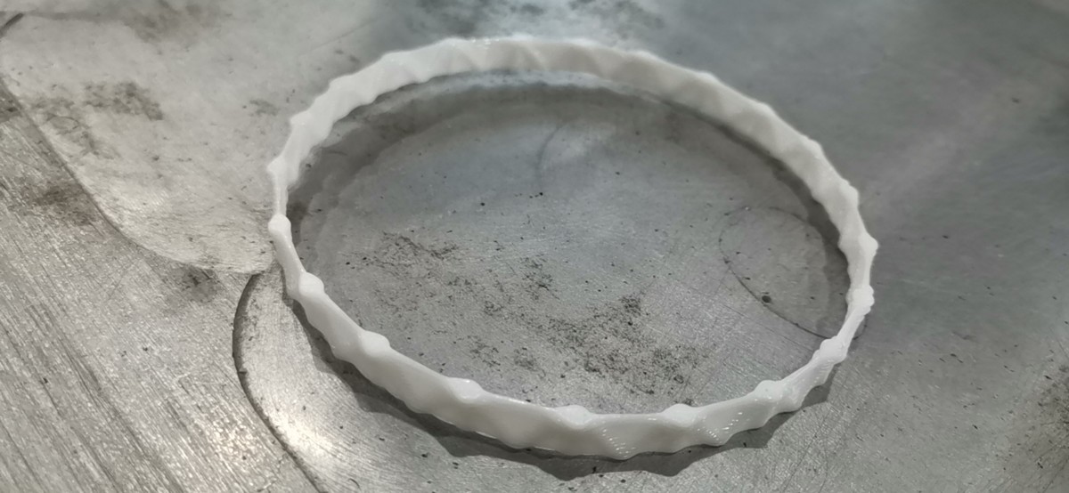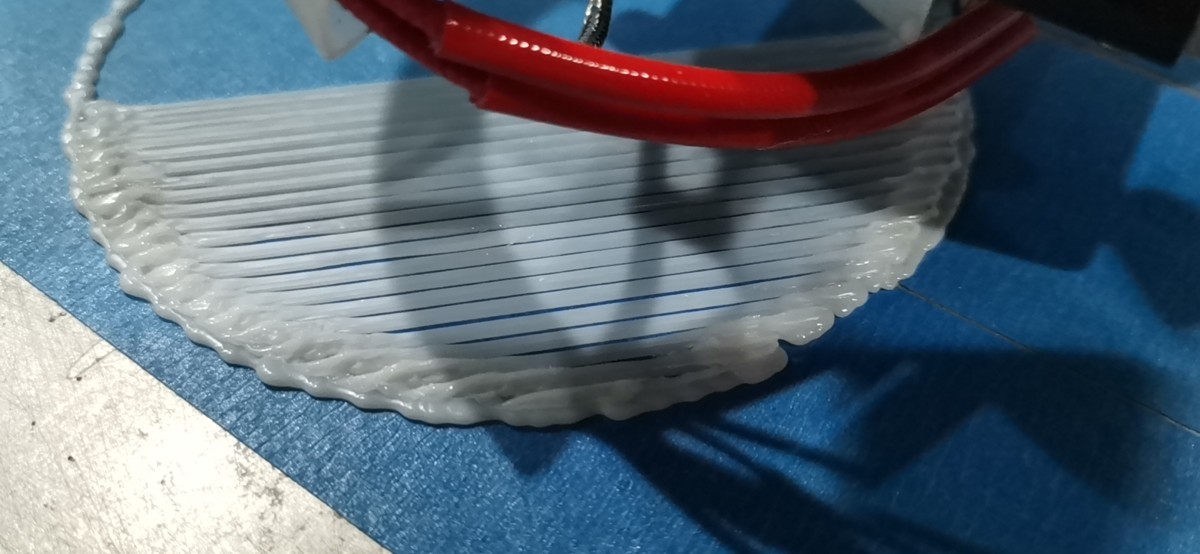 When the robot moves along a circular trajectory, the extruder keeps extruding material.