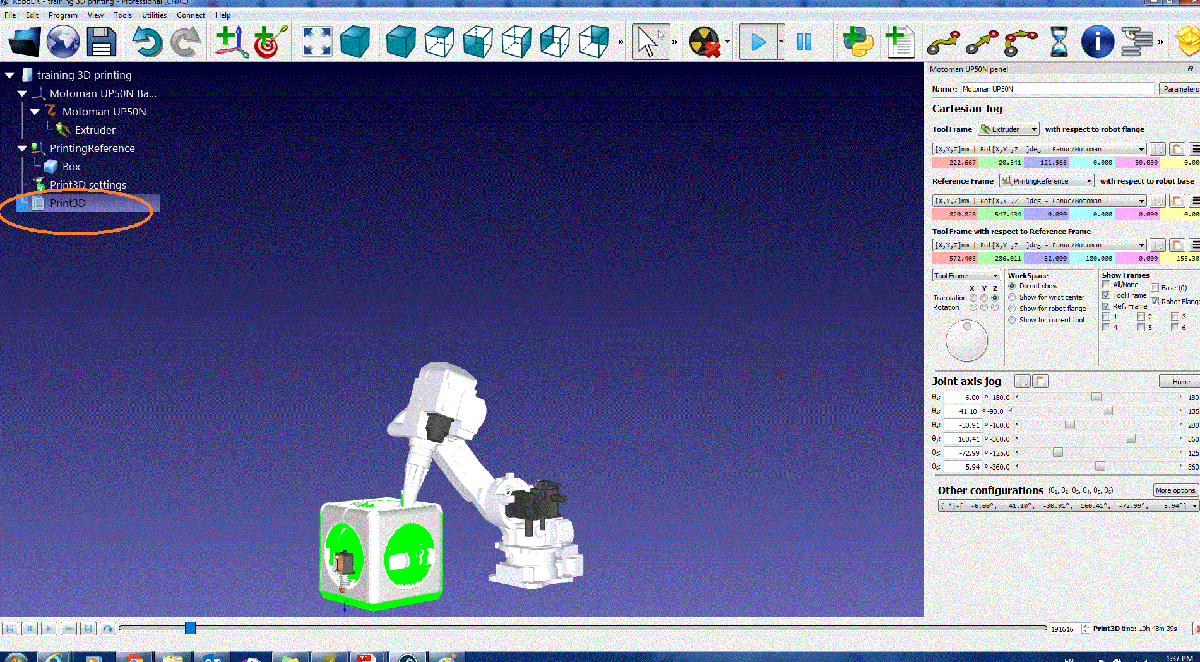 (05-12-2020, 10:58 AM)Albert Wrote: You should stop collision checking by selecting: Thank you very much for the info. I have another issue in this step. In the tutorial, after slicing the object and updating the 3D print parameter, by default, RoboDK create a program called Extruder . In my case I can run the simulation but there is no program events created. am I missing something?