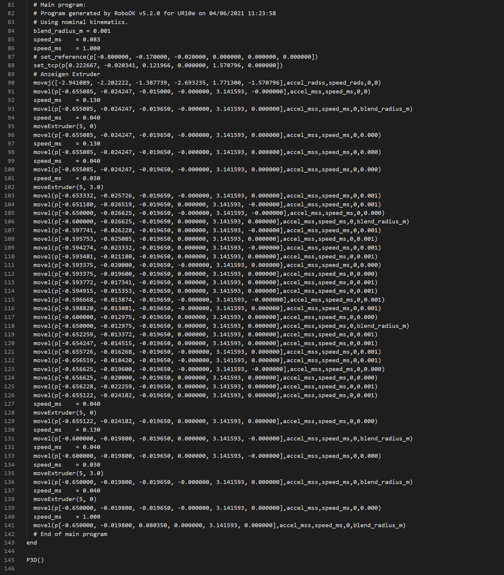 Hello, I have found the mistake. This was in the code I have added from your manual page (https://robodk.com/doc/en/Robot-Machinin...rint3Dpost).