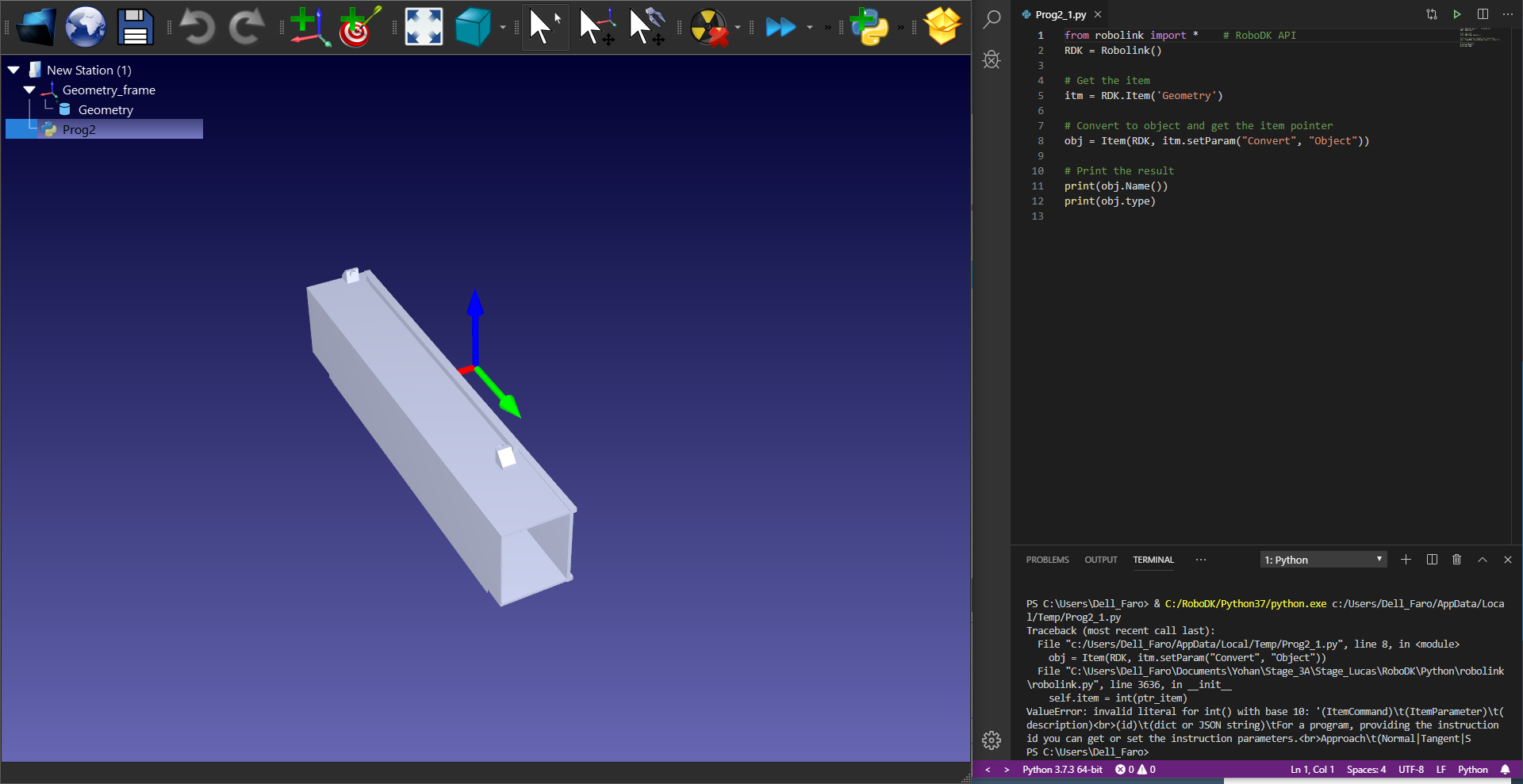Thank you for taking my request into account. I have tested your code example, however I have an error appearing and I don't know where it came from. I have checked and I do have the latest RoboDK v5.2.3 version. Could you help me?