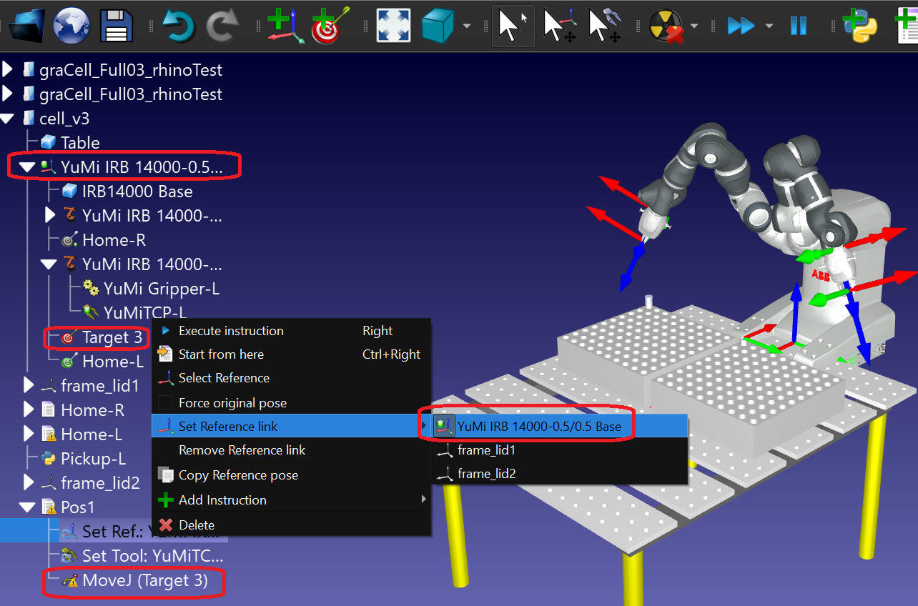 That was my first attempt when my target was in frame "frame_lid2" but the robot moved exactly the same (in the base of the second arm). My intention is that the target is in "frame_lid2" (which you can see in the corner next to the test tube), thats why I put in the program this instruction "Set Ref.: frame_lid2". For some reason, it looks like the robot is still moving to the target in relation to other arm base. Could it be possible that there is something wrong with representation of the cell on my computer?