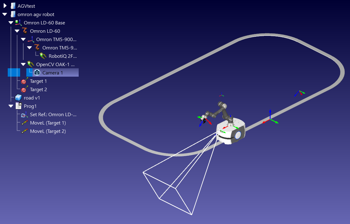 (11-16-2023, 06:37 PM)Alex Wrote: You can use a Curve Follow Project using the Tool orientation follows path algorithm. You will also need a new TCP at the base of the AGV to use as the "tool" Hi Alex, I was not able to make the curve following work. I have included the rdk file. Could you suggest a curve which will work for me. I got an error saying the T1 was not working.