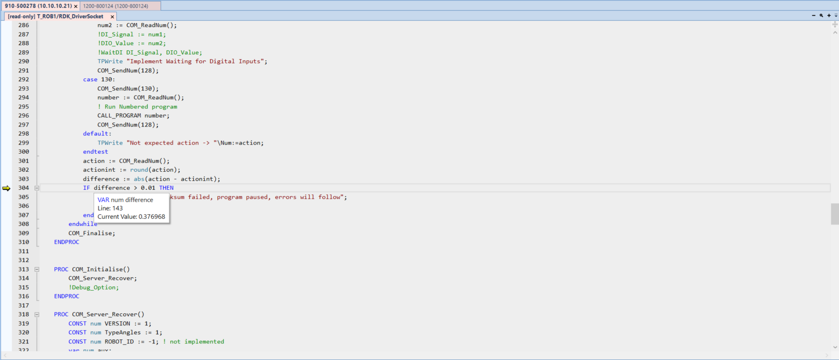 I didn't have any problems at all working with another ABB Robot (1200-800124).