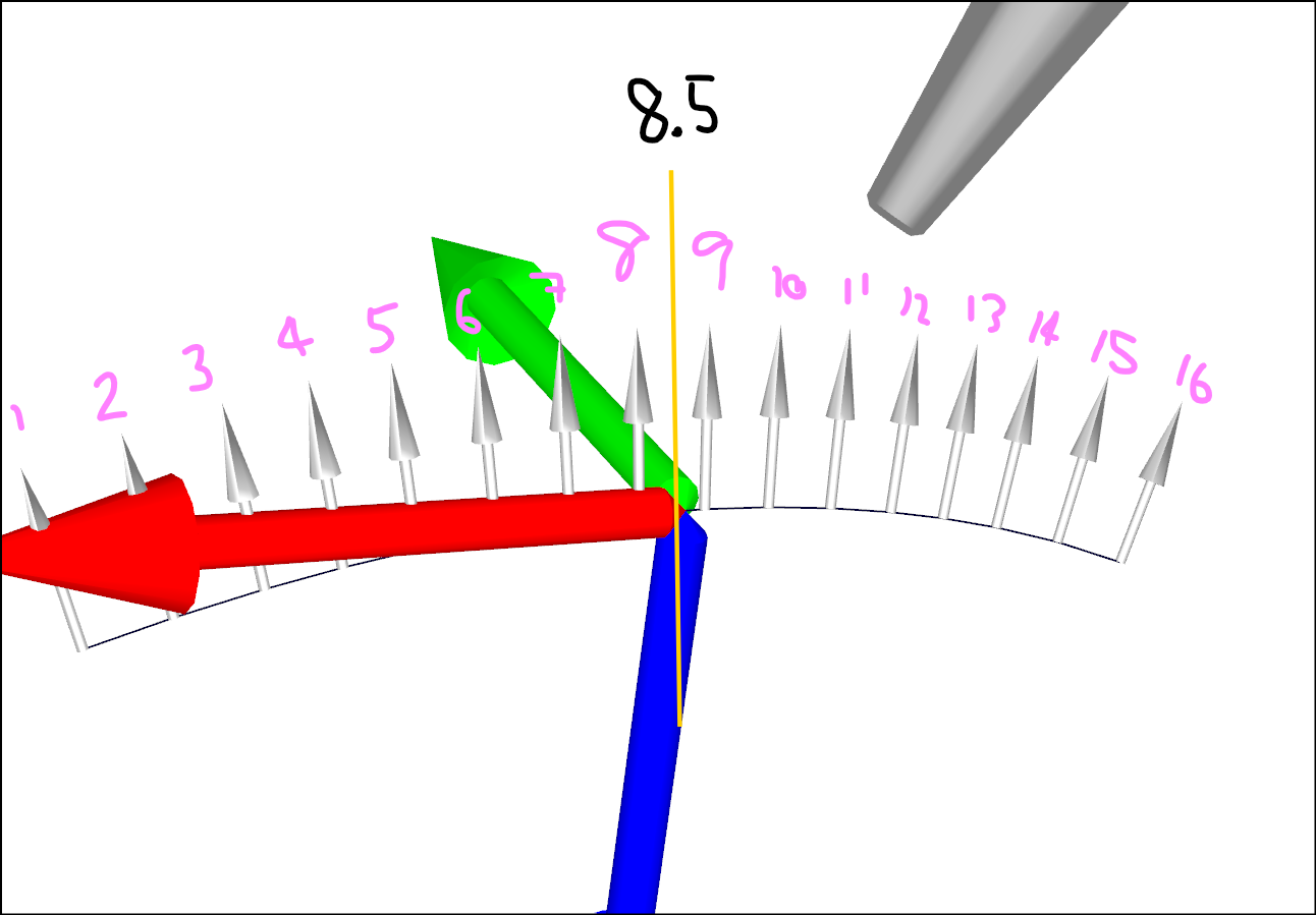 For example, we have a curve defined by 16 points. However, the linear move targets along the curve include 17 distinct points. Why is the additional target, between points 8 and 9, being added?