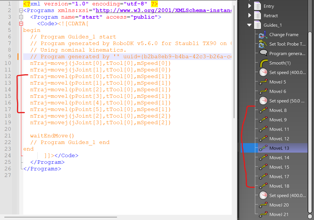 The Staubli post-processor is removing some of my MoveL instructions (in RoboDK I have 9 MoveL instructions but the resulting VAL3 program contains only 6).