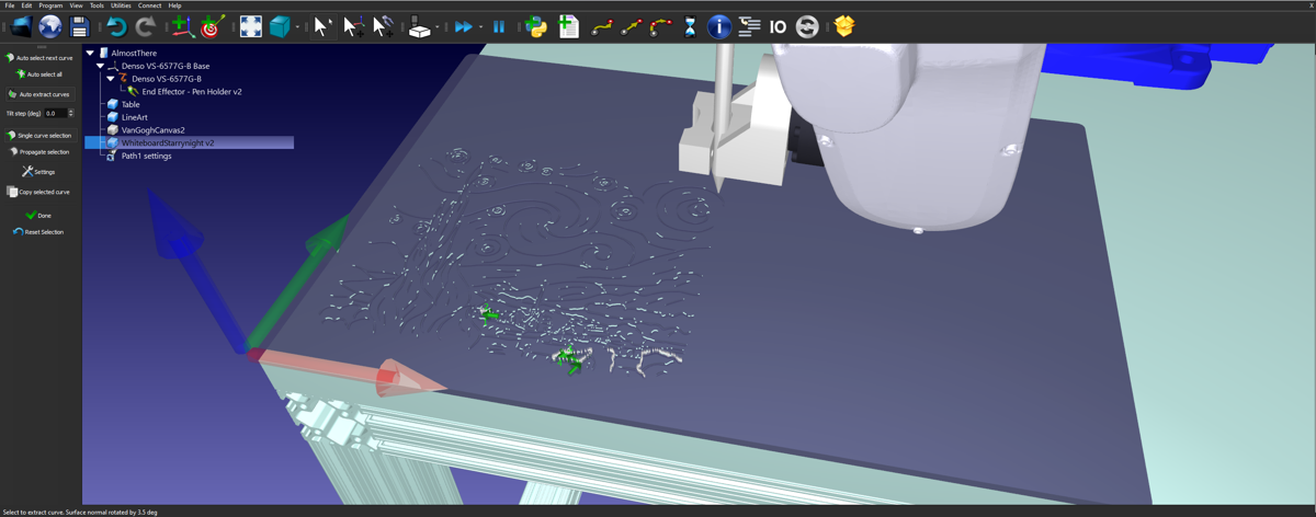 I feel like something similar to this should be already posted somewhere, but I can't seem to find it. I have a depression in a board, which I'm trying to get my robot to trace with a pen in RoboDK. I am able to select the edges to create curves, but I would like to know if it's possible to autoselect all the edges to auto generate the curves (otherwise I'd be manually selecting a few hundred curves to move between)