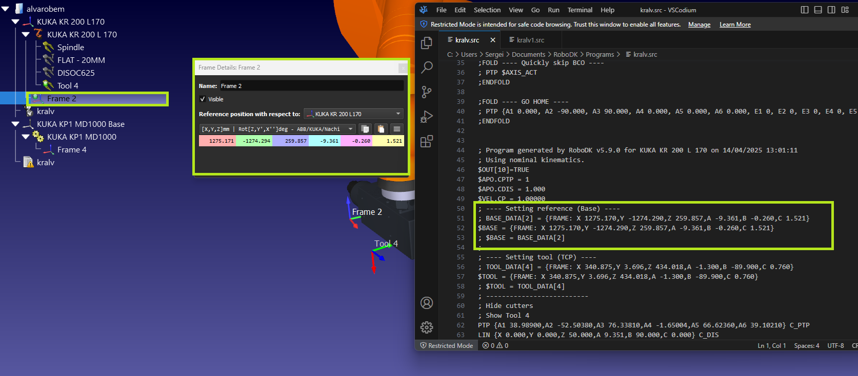 Also, your program in RoboDK should use the same coordinate system you defined in your $BASE variable (the active reference).