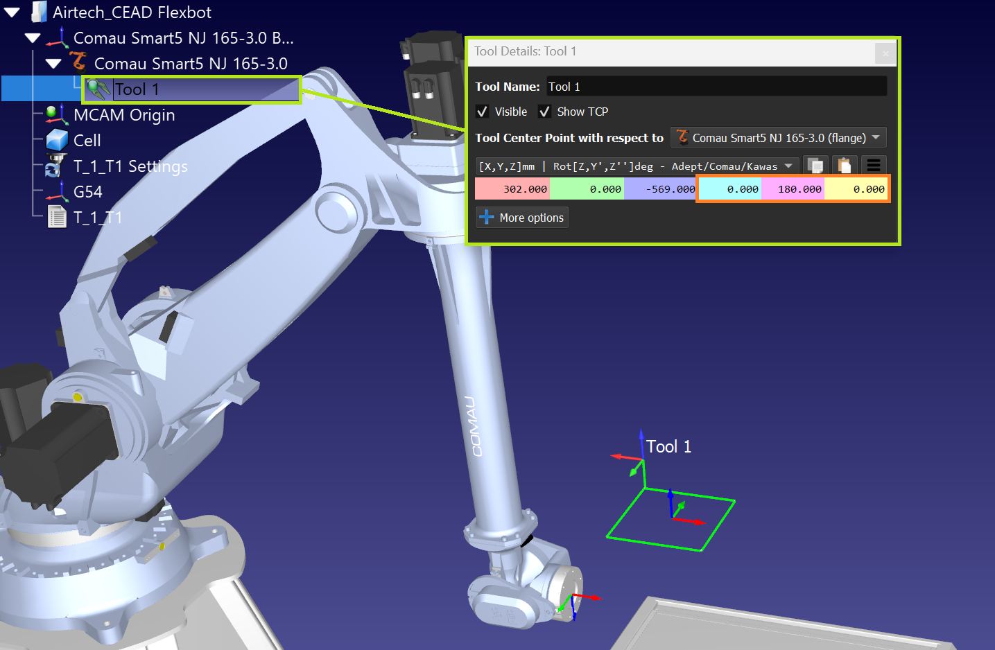 I'm working on a CEAD Flexbot cell for a client. It uses a Comau robot with a Sinumerik controller. It seems, with the Sinumerik controller, I want the Z of the tool frame pointing up. I know there was a way to flip the tool vector but I don't quite remember where. Can you give me a hand?