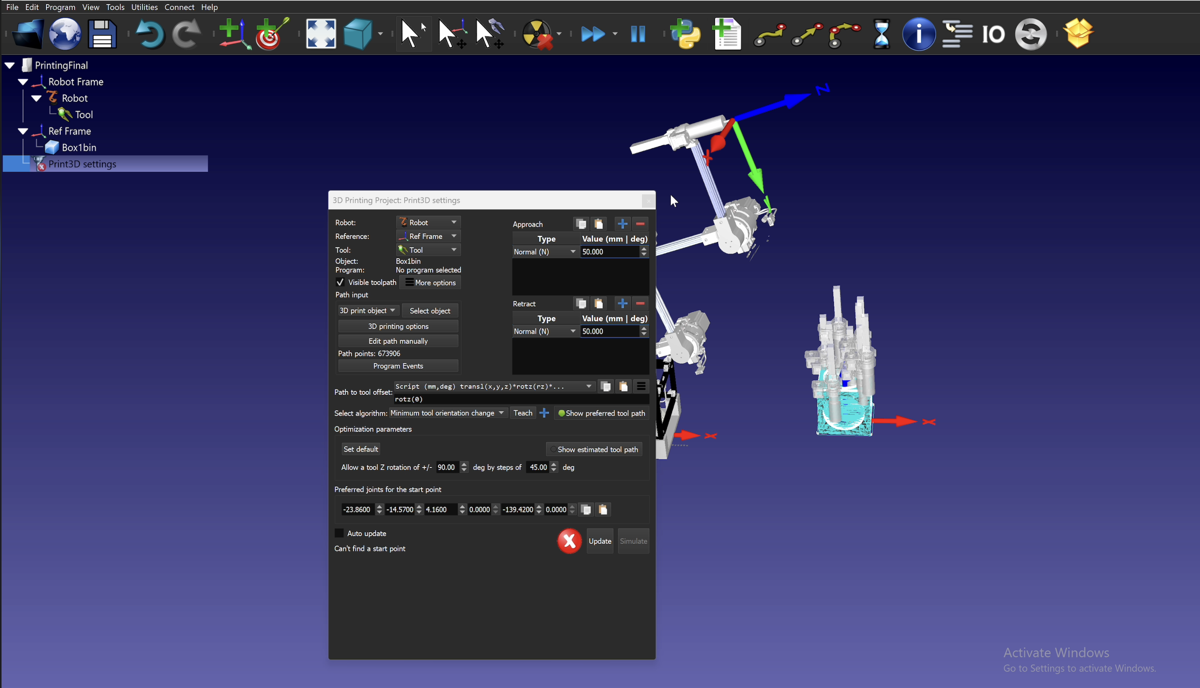 https://robodk.com/doc/en/Example-3-Axis...ining.html 3D printing, curve follow projects and robot machining are handled very similarly with RoboDK when it comes to converting a path into a robot simulation and a robot program.