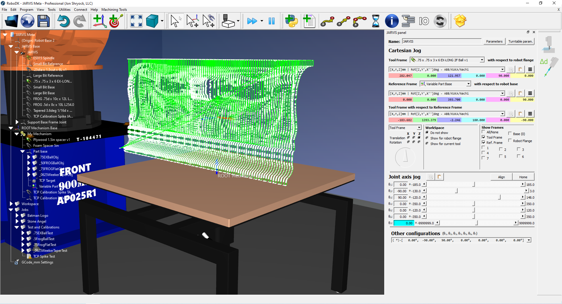 In my RoboDK screenshots, the wide toolpath is exported with a simple GCode post processor, and the toolpath generated on a single plane is exported with a post processor that wraps X values about the Y axis.