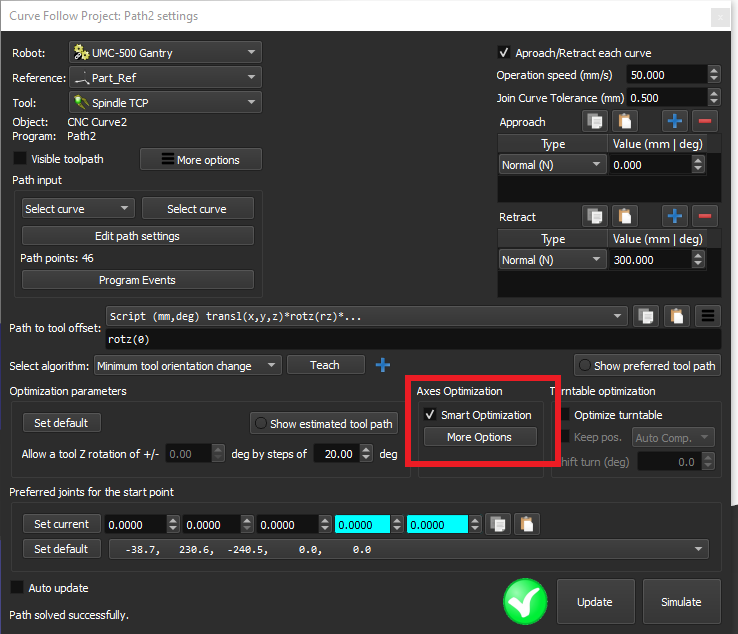 In RoboDK, would there be any way to position the spindle head perpendicular to the axis of rotation, then import a toolpath which makes the turntable rotate with X commands instead of the spindle head moving linearly along X?