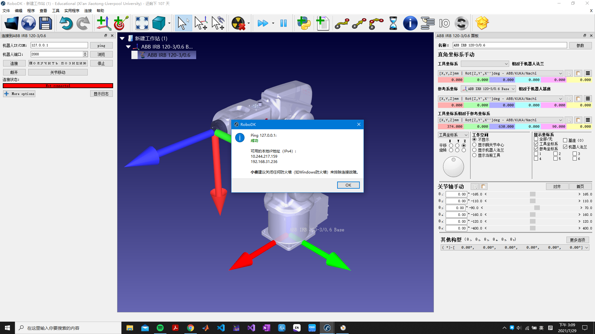 Cannot connect to REAL robot IRB120