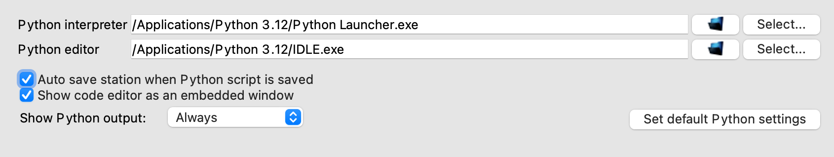 Greetings, I have been trying to get python to work with RoboDK on my Mac m1 laptop, without much success. I have set the filepaths, but keep getting the "Failed to start Python editor. Install Python and set Python paths in the Options menu->tab Python." error when I try to edit a script. I have included pictures of both the path and the error. Thanks!