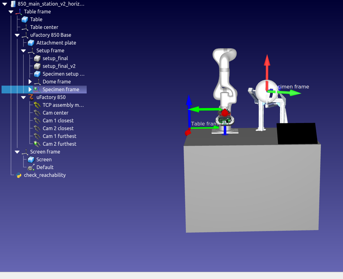 - run a python program that checks if the robot can access all the positions required to take the pictures