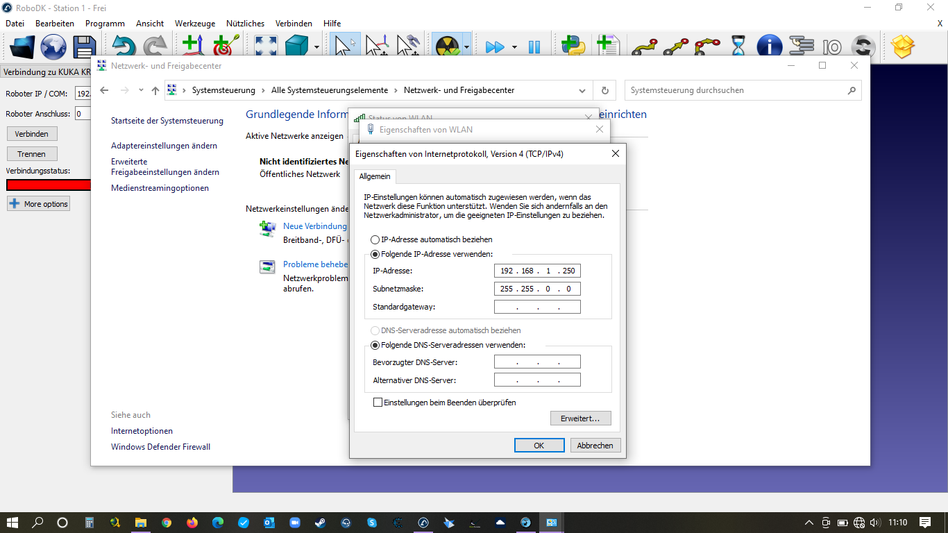 Robot-IP: 192.168.1.21, see bottom right