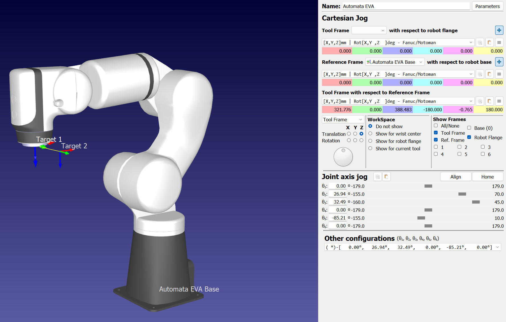 Also this new EVA robot model does make weird moves in RoboDK when trying to teach targets and movements... but this was still work in progress? All my targets are unreachable.