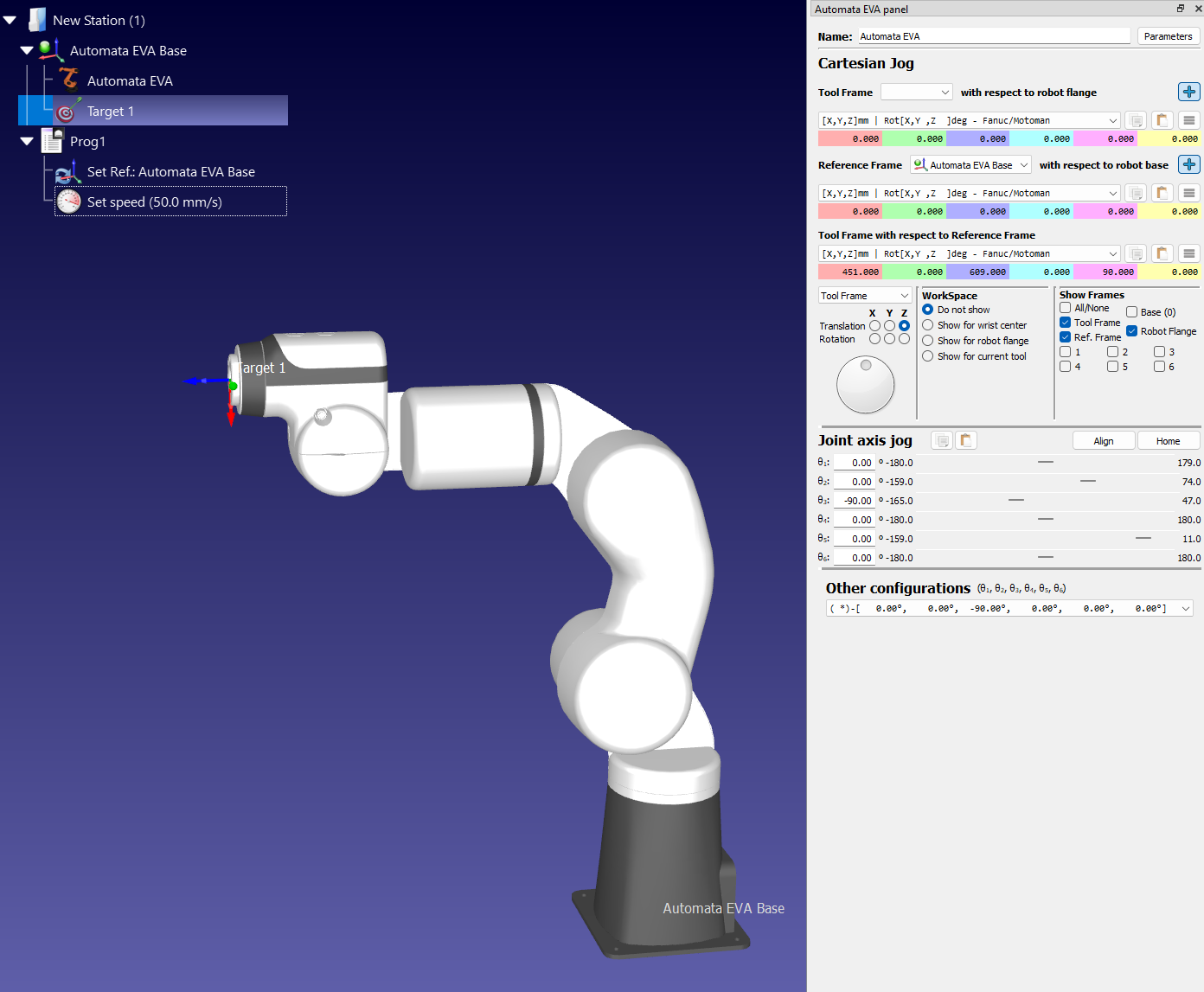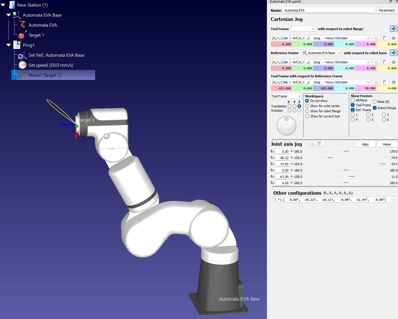 The EVA model posted by Olivier on 07-05-2025 is still behaving strangely when teaching targets and movements. While the axis values are correct during jogging, the robot's position becomes inaccurate when teaching targets and movements (it flips Axis 3, causing all axes to go non-optimal).