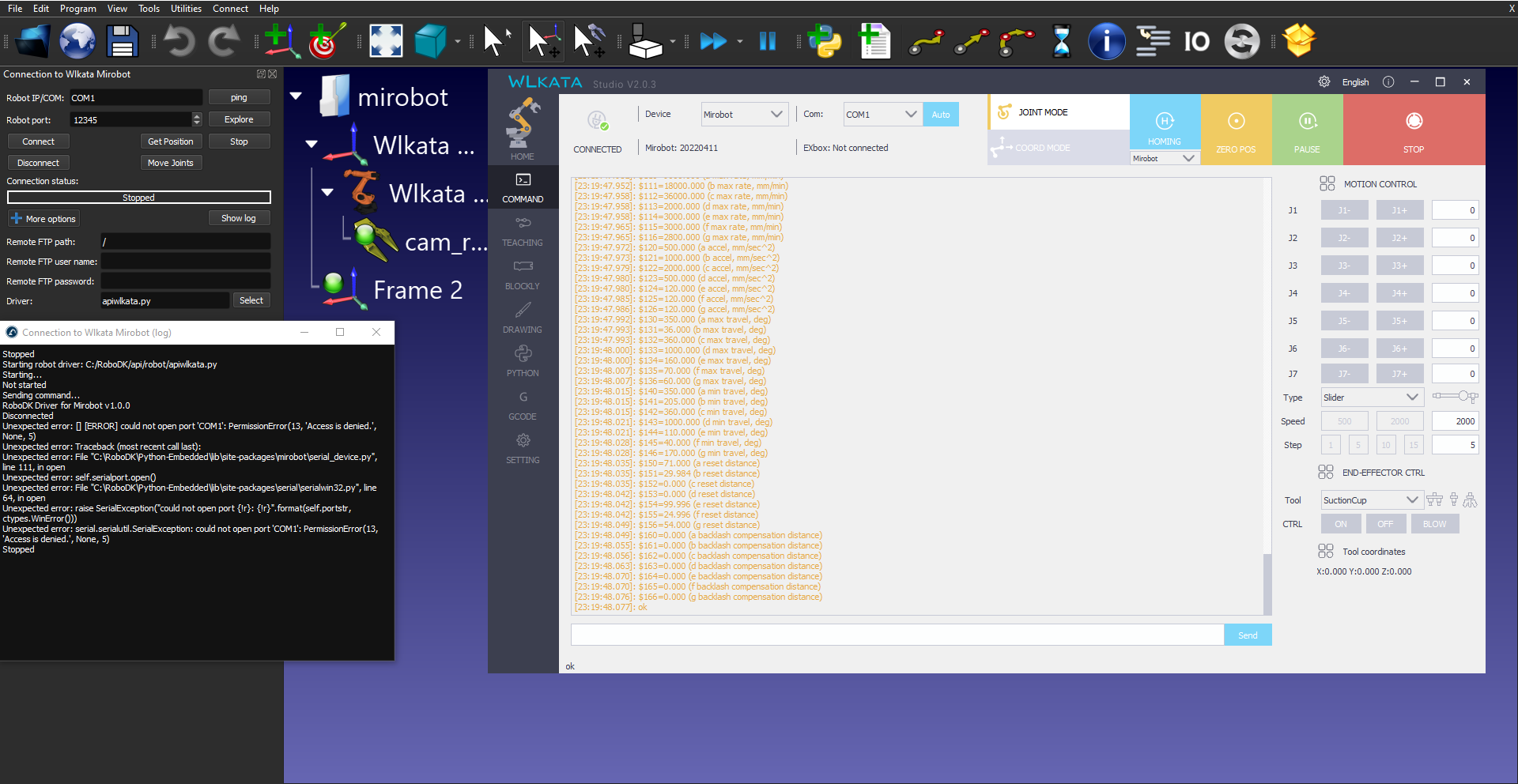 (09-13-2023, 09:09 AM)Albert Wrote: The Wlkata robot requires a serial COM port. Are you using a serial (RS232) connection? In this case you should enter COM1 in the IP/COM field (or the correct port used by your computer, COM2, COM3, ...).
