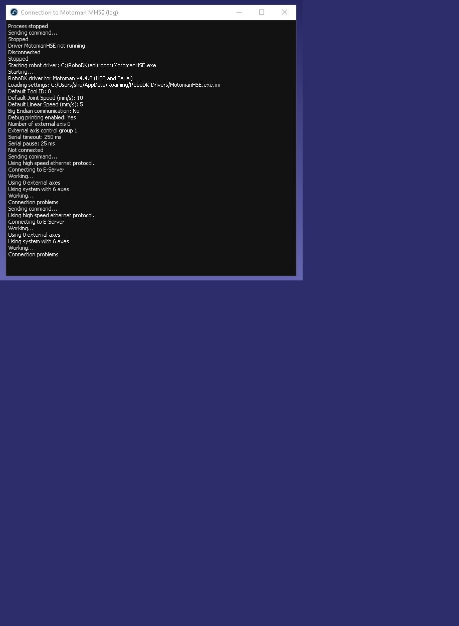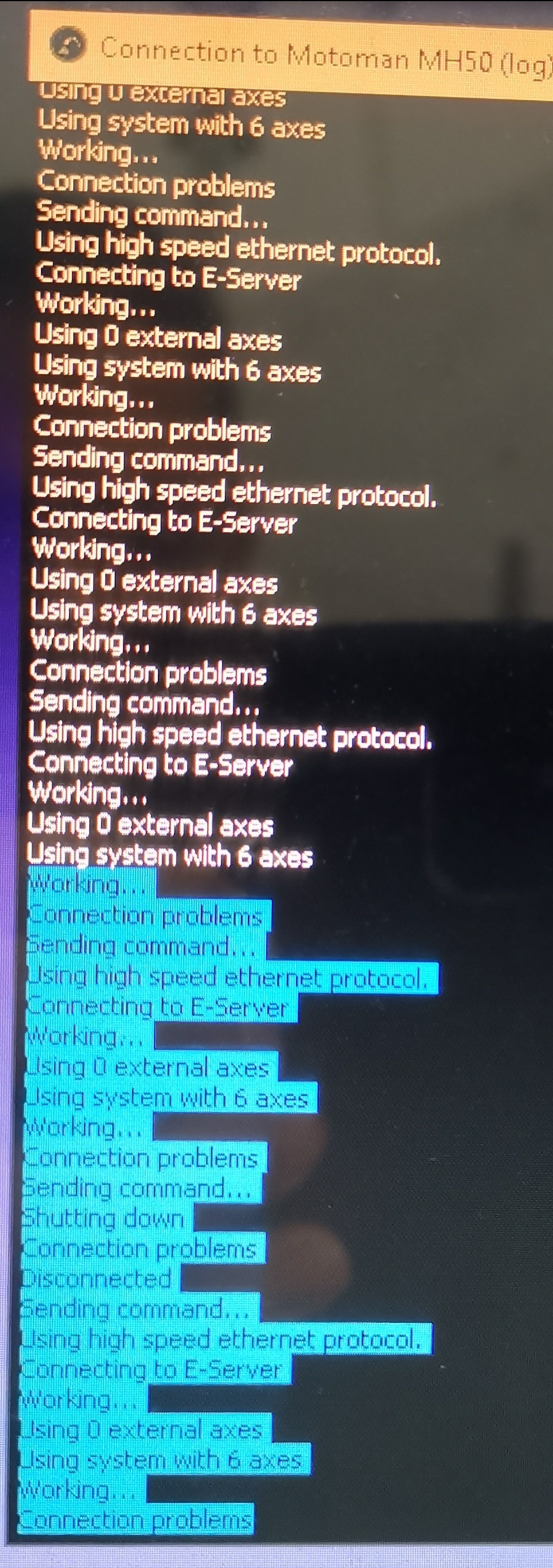 (01-20-2021, 05:38 PM)Phillip Wrote: It appears the controller isn't responding to initial request to make sure the robot exists, do you know what controller your using with the robot? (DX100,DX200,YRC1000,etc)