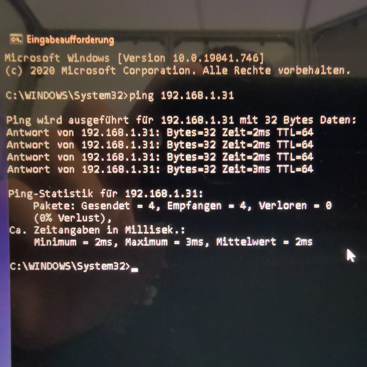So now when I ping the IP address of the Controller, I get correctly the feedback from the controller.