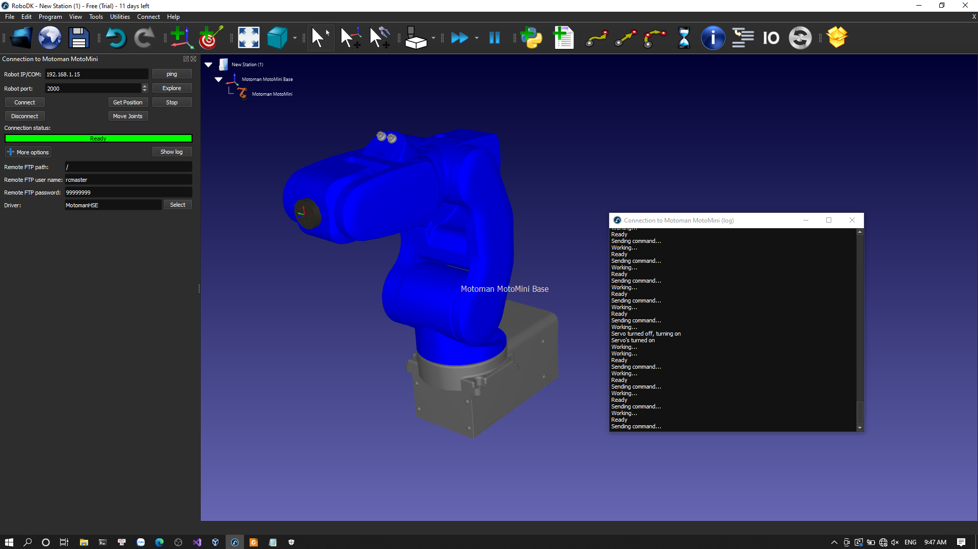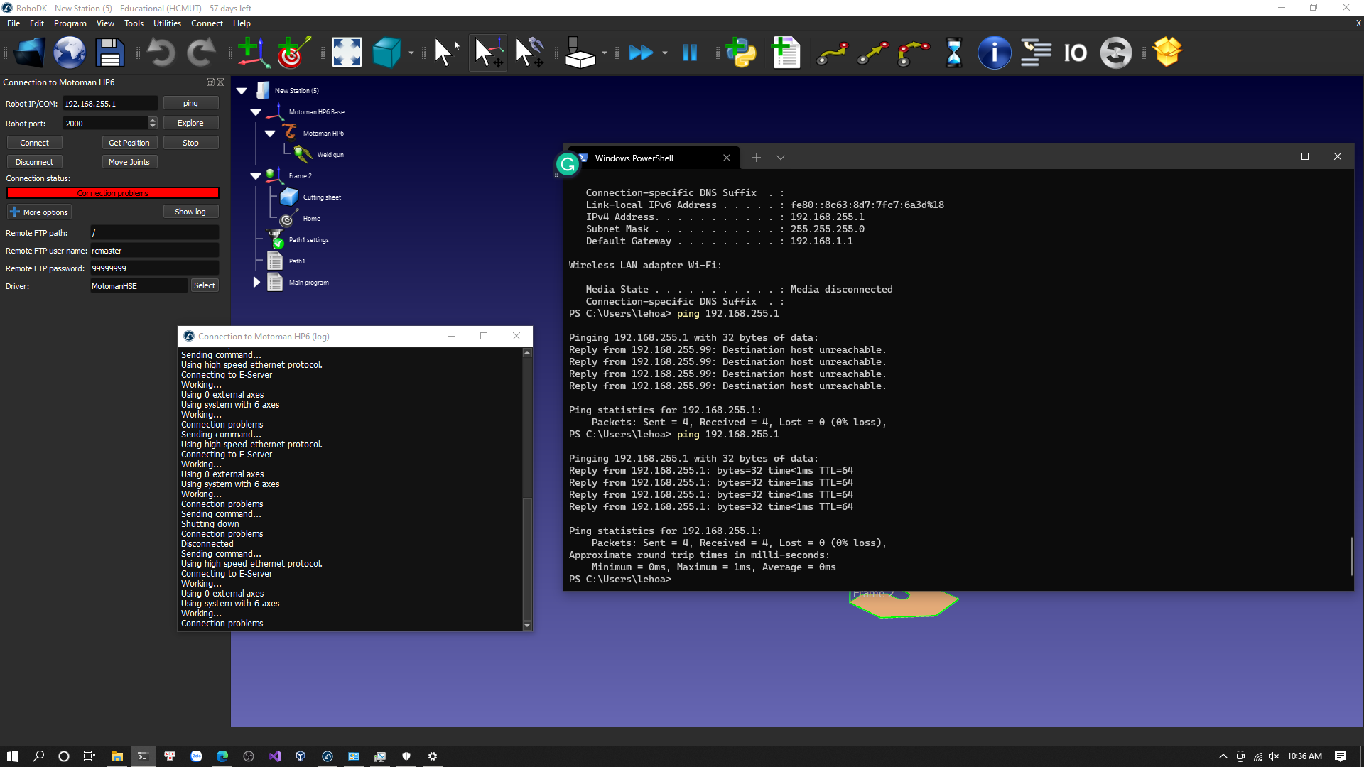 I'm having some problems connecting RoboDK to NX100 Motoman controller. I have followed all the steps in here https://robodk.com/doc/en/Robot-Drivers....oubleshoot, https://robodk.com/doc/en/Robots-Motoman.html and made a ping test. The communication between my computer and the controller was successfully done. However, I still couldn't connect and didn't figure out a way to fix it while I succeeded in connecting RoboDK with DX100 and YRC1000 controllers. Can you guys suggest to me some solutions for these problems?