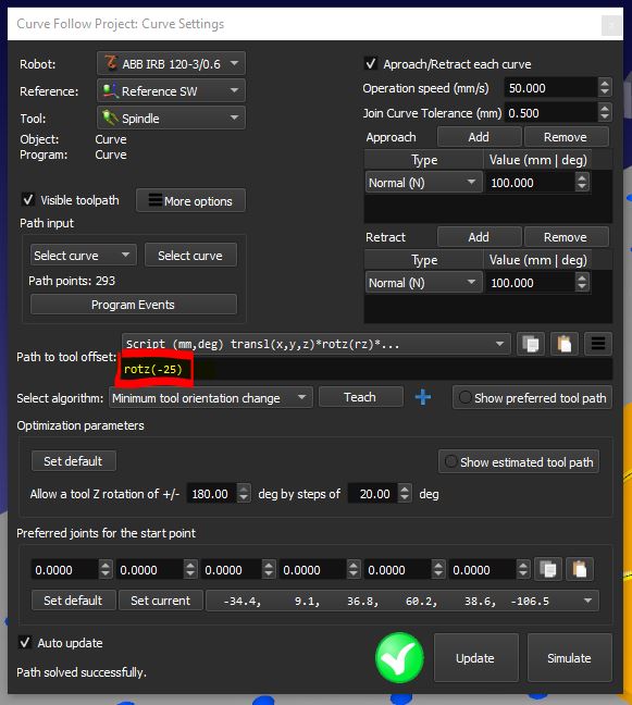 You can also activate "Show prefered tool path" to see the virtual orientation of the tool or "Show estimated tool path" to see the estimated path.