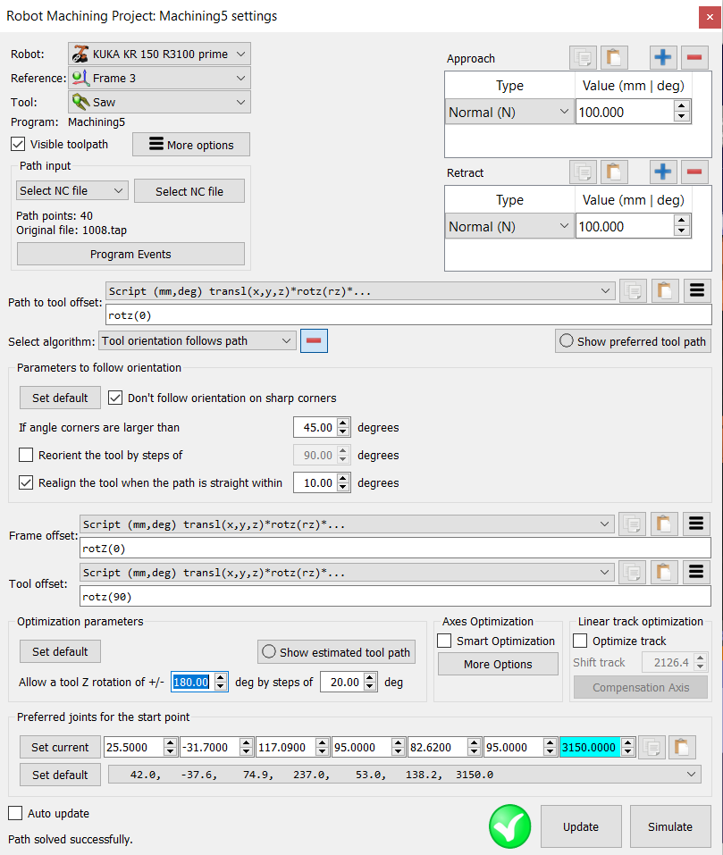 I know I can teach the robot/tool starting position in machining project setting, but I do not know if I can do the same for the middle of this process: to teach the robot tool to turn after finishing the first path. I really appreciate if you can show me some methods to do this. Thank you very much.