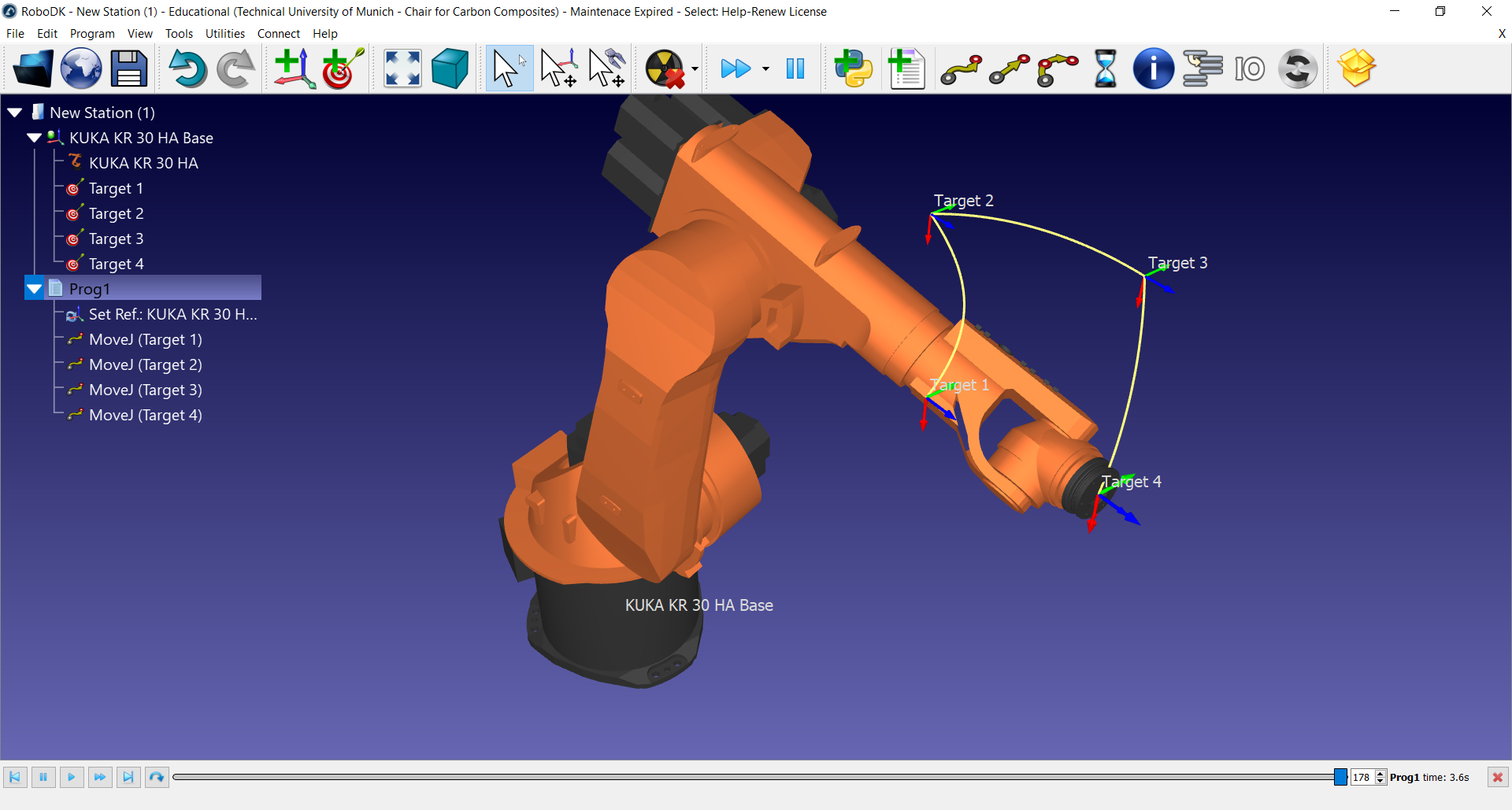 So here is the example that I want to try. There are four points and I used Joint Motion to connect them together. This becomes PTP in KUKA KRC4 post-processor by default right?