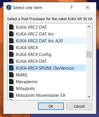I've then added the post-processor "KUKA_KRC4_SPLINE_DevVersion.py" you created and chose that as the post-processor, it still shows PTP in the exported file. Not sure if I used the post-processor correctly...