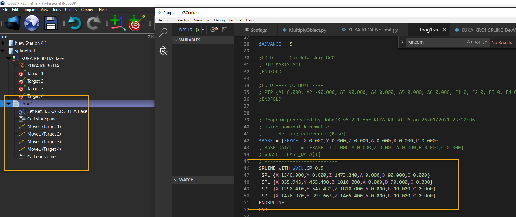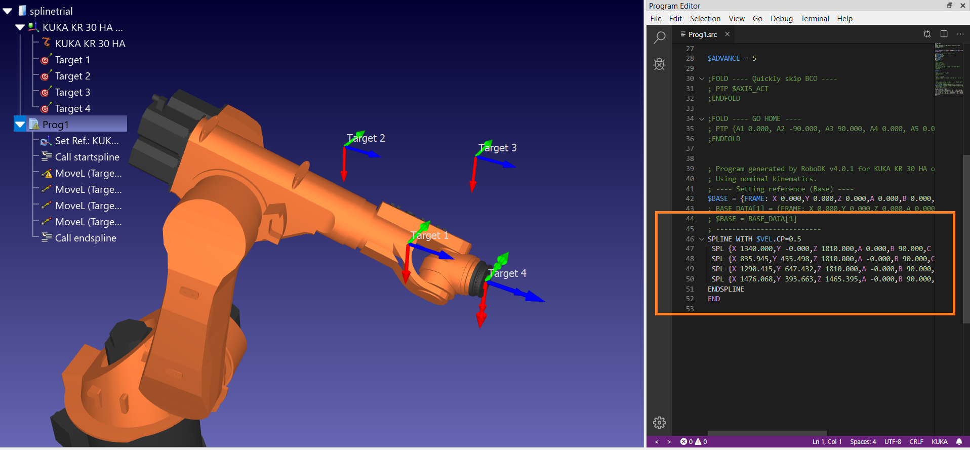 I have implemented the example you have provided above however when post processing with the latest KUKA KRC4 Spline I get the following