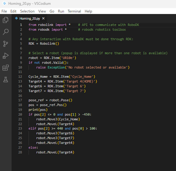 Generating programs from the API will output the robot commands. If you have logic or loops in your Python code, they will be evaluated at the time you run your the script for program generation.