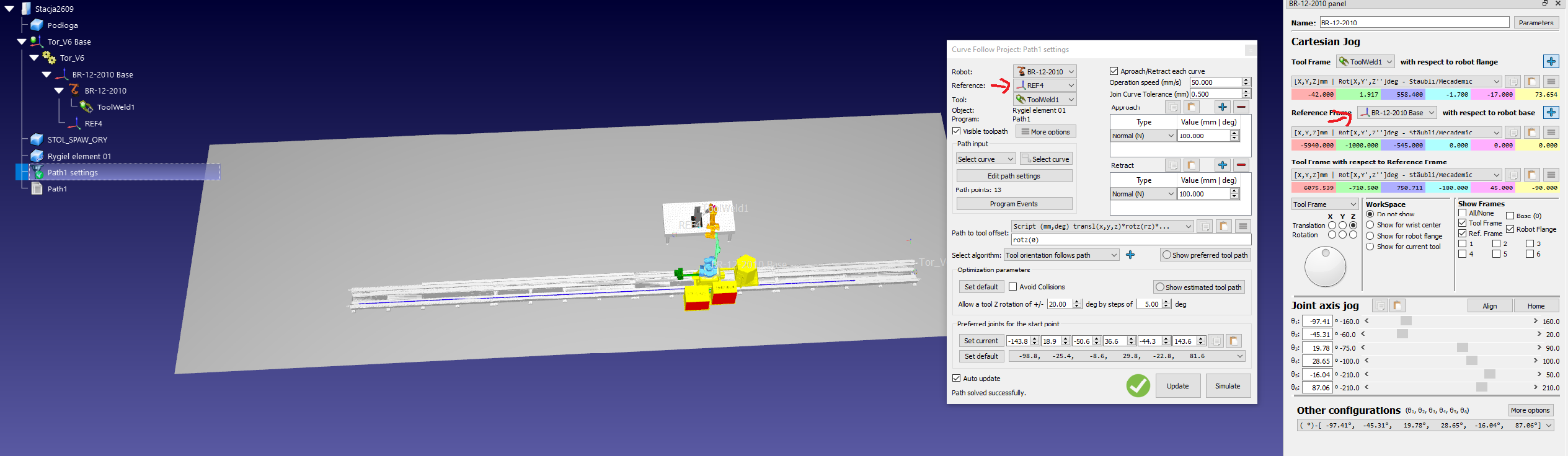 I have a station with  robot on a external axis, I'm trying to make curve follow project and achieve coordinates (for post) in cartesian with reference to REF4, but instead they are provided in reference to some other (temporary?) reference point. Is there a way to do this ?
