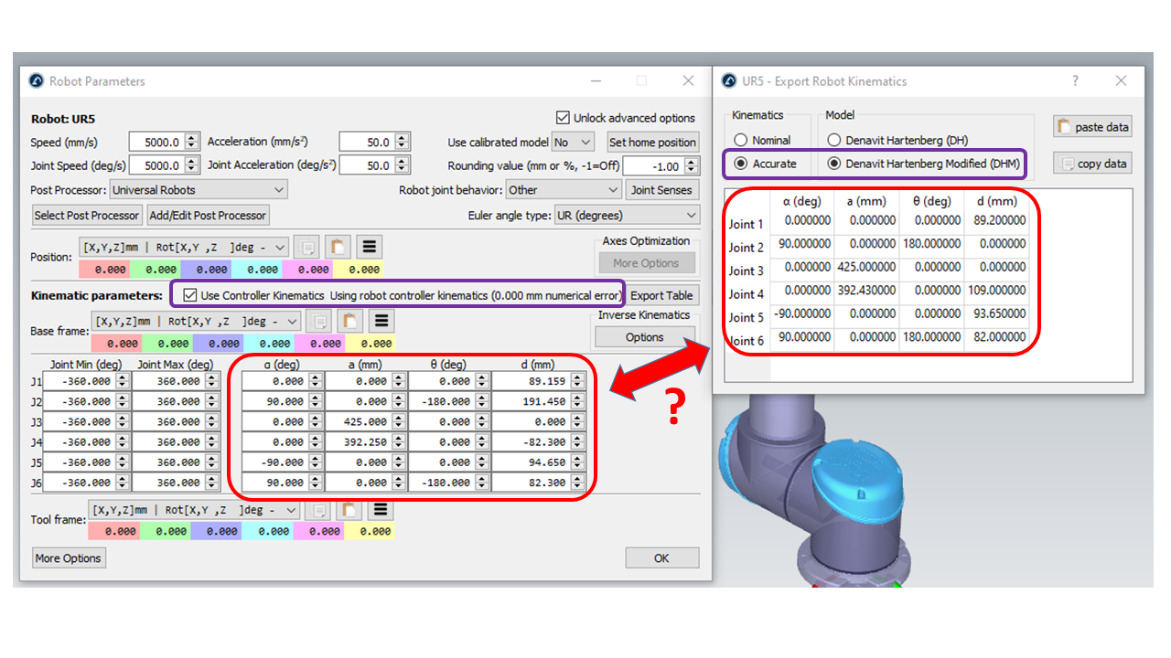Does 'Accurate' refer to real (robotic controller) DH-parameter values?