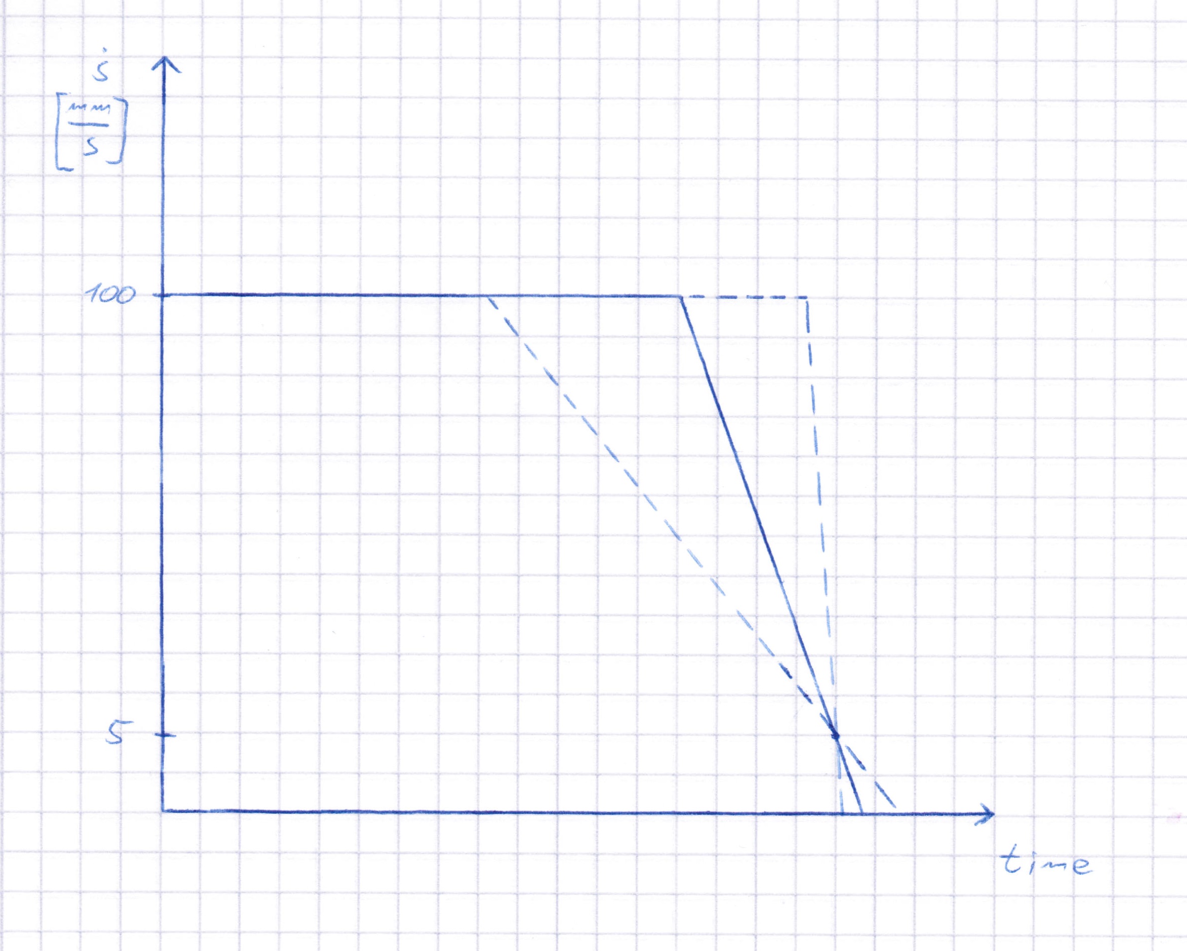 For instance to start movement with speed 100 mm/s and close to the destination point reduce speed with this function to 5 mm/s.