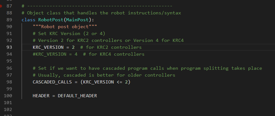 Thank you for your patience! I have copied your KUKA_KRC4_Slow post as per insert below.