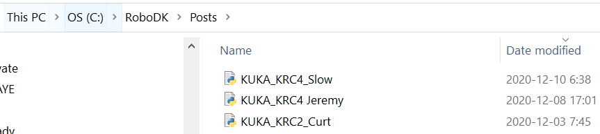 Save in it "C:/RoboDK/Posts"