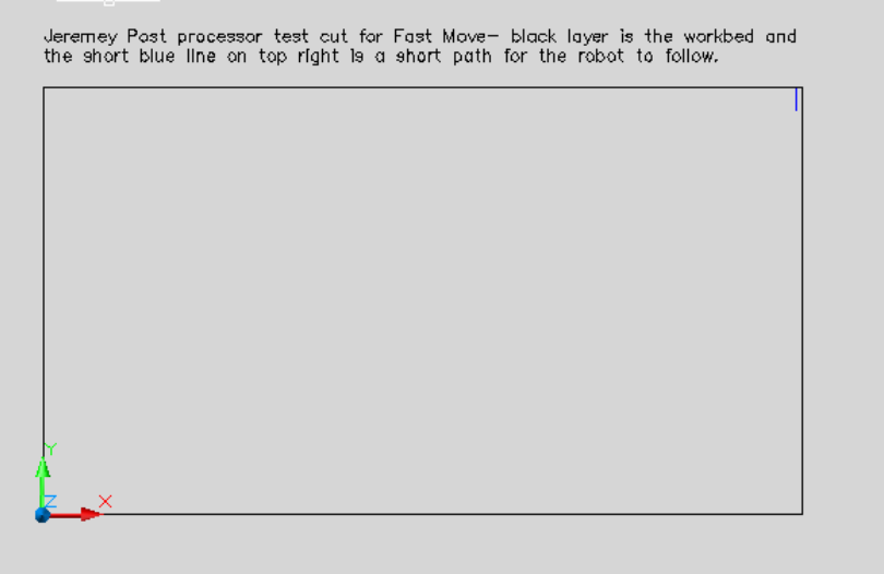 I then created a small move on a DXF drawing to the furthest X and Y position on the worktable which is the furthest point form the Robot home position. This was done to test the speed and momentum of the move to PATH START. I have attached the DXF drawing. See insert of drawing below.