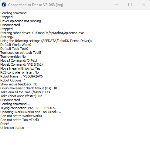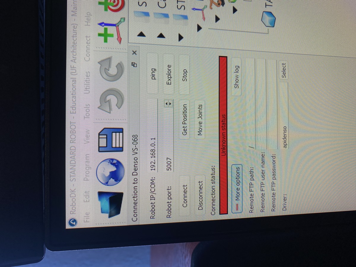 1. I successfully connect to the Denso Robot using IP address 192.168.0.1 in Denso WincapsIII.