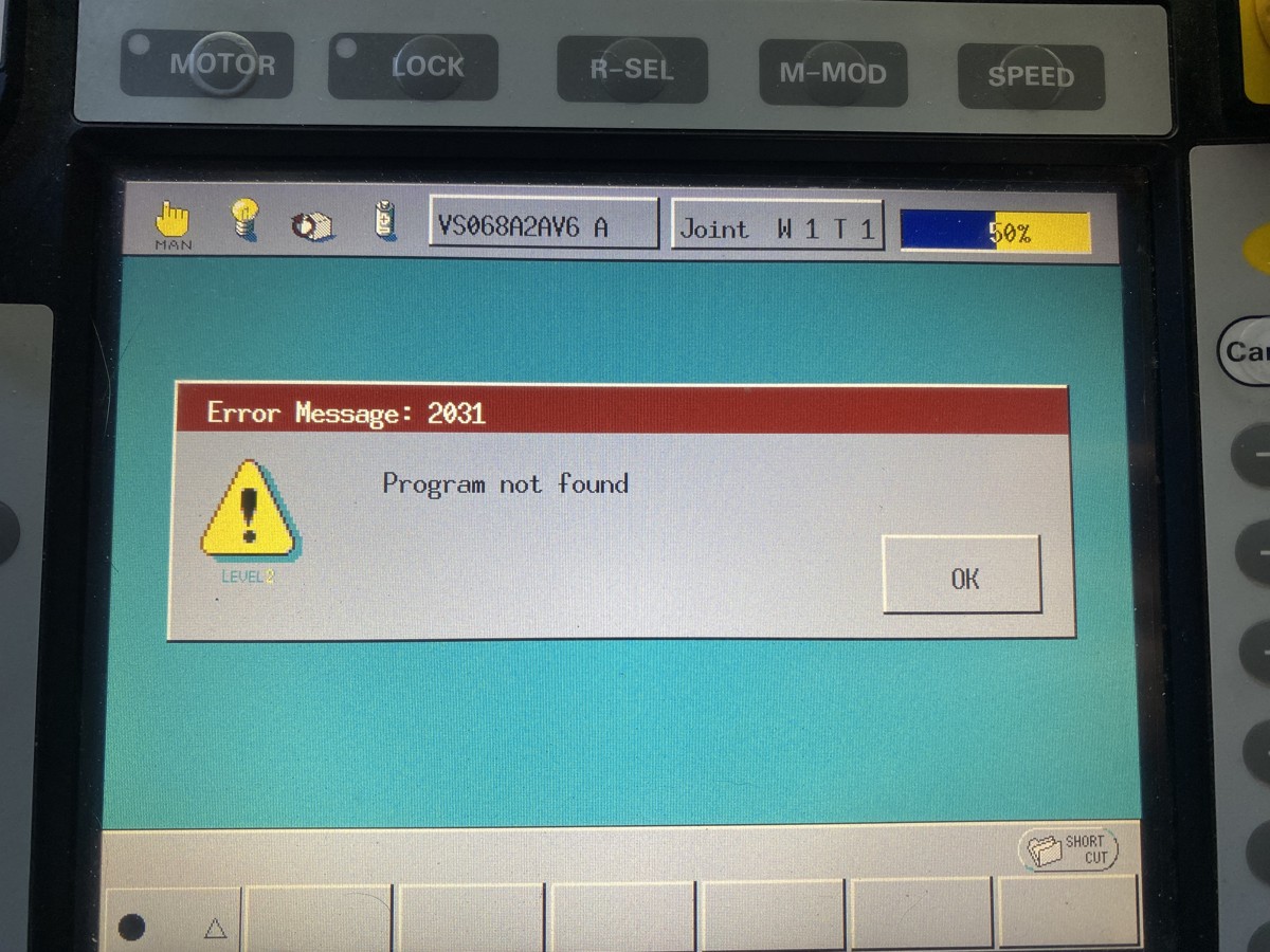 I have not been able to connect to the robot successfully. When I try and hit connect, I sometimes get a 2031 error message saying that the program is not found. I was hoping that with the images provided, I could get some assistance on what is left to try and figure out on this robot.