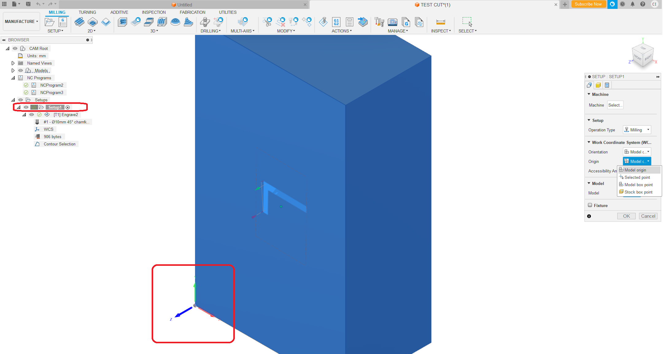 I have the model on the table, but I cannot get the cam program to show up in the center of the part.