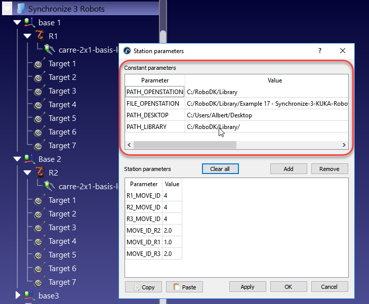 I am attempting to use Python to recreate a station that I have previously created using the RoboDK UI, and have run into an error whilst attempting to use setParam to change the file path of the station: