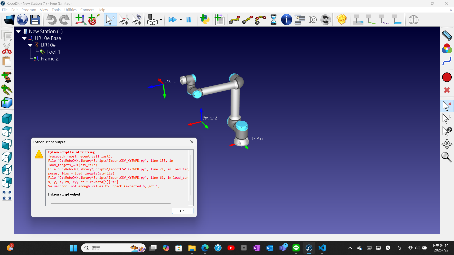 The attached error pops up after selecting Tools->Run Script->Import CSV XYZWPR.