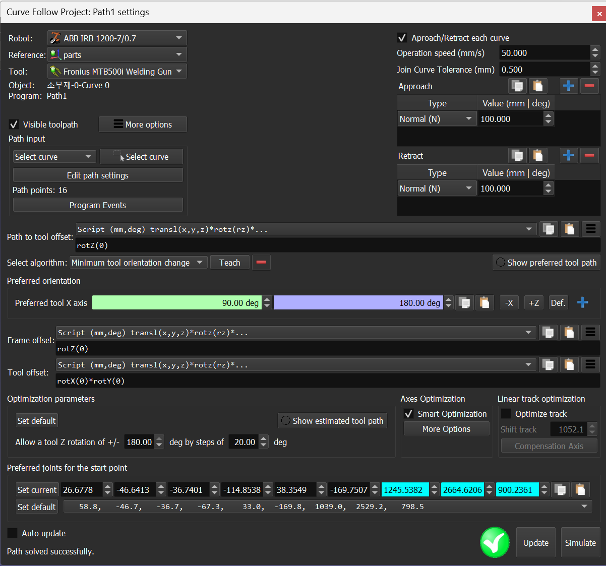 The robot and my gantry robot are attached well. Also, the program recognizes it has external axes. Tough, it does not work as one when I use the path follow function.