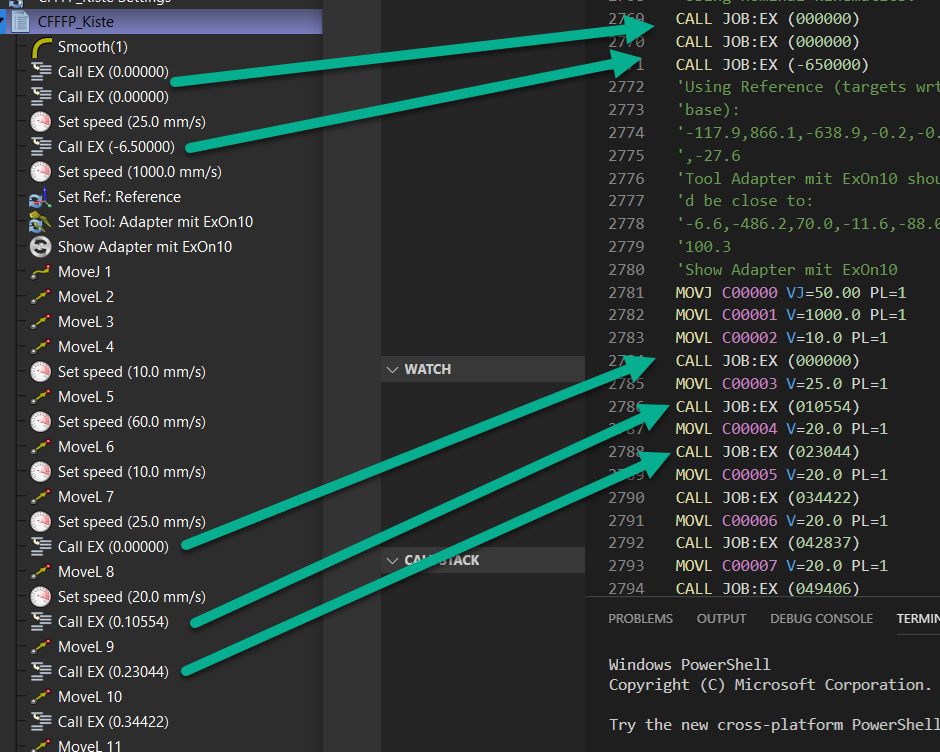 in Yaskawa, it is not possible to use numbers with decimals as an Argument, Only Integers are allowed. But In ROBODK I become the speed of extruder as integer and decimal value for example :
