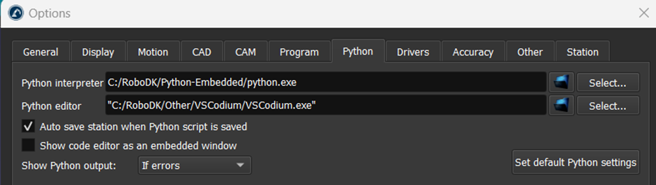 Invalid Python version or post processor not found. Make sure you are using a supported Python version: C:/RoboDK/Posts/v311